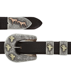Pecos 2073 Sterling Silver Quail & Pointer Buckle Set
