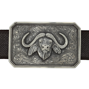 Crockett 1816 Large Sterling Silver Cape Buffalo Trophy Belt Buckle