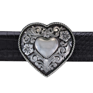 Ideal for those who appreciate fine craftsmanship, this heart-shaped trophy buckle is more than just an accessory—it's a statement piece perfect for elevating any ensemble. Whether for a special occasion or everyday wear, it embodies elegance and refinement. Made and engraved by hand in Texas by Clint Orms Engravers & Silversmiths.
