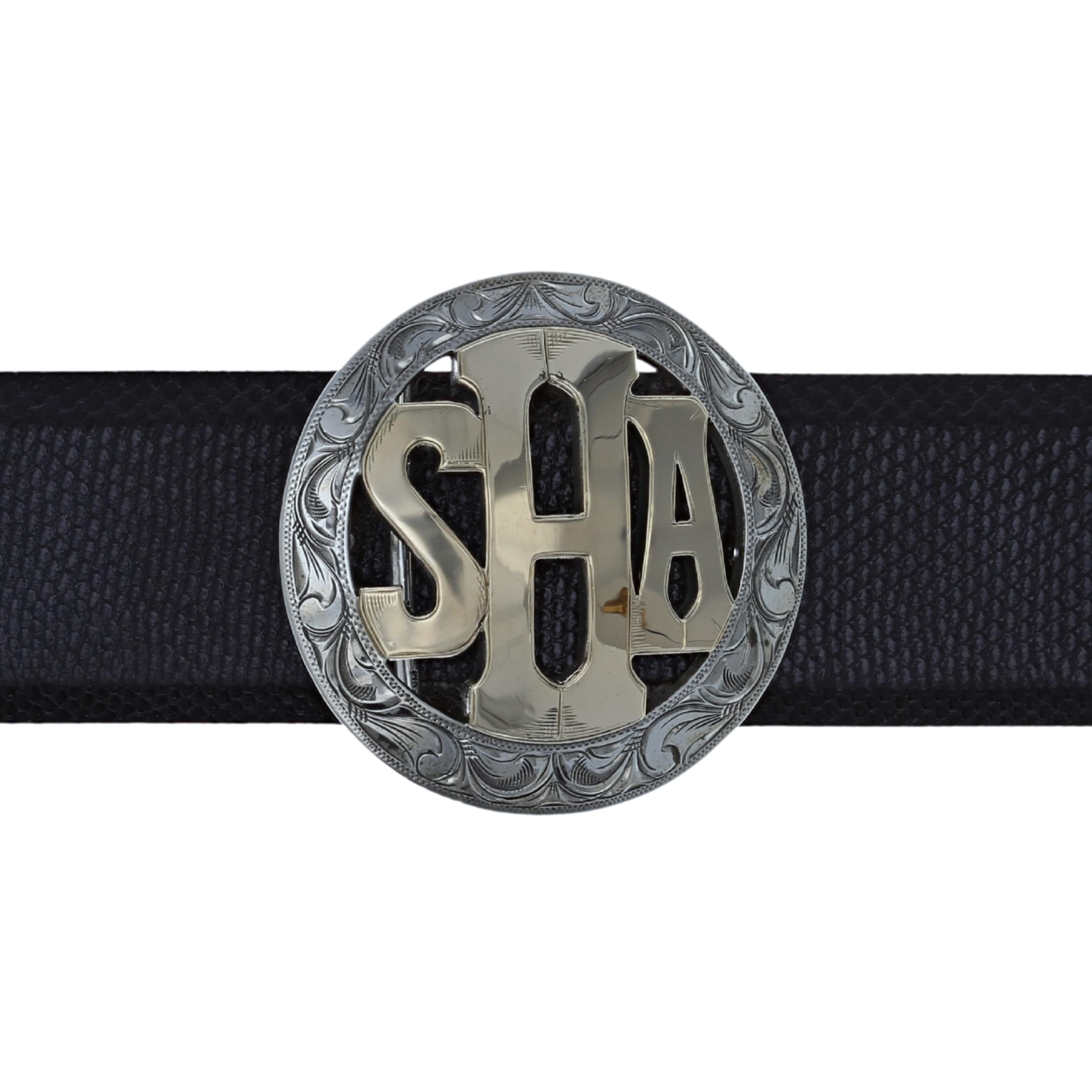 Motley 1802 Sterling and Gold Round Initials Trophy Buckle