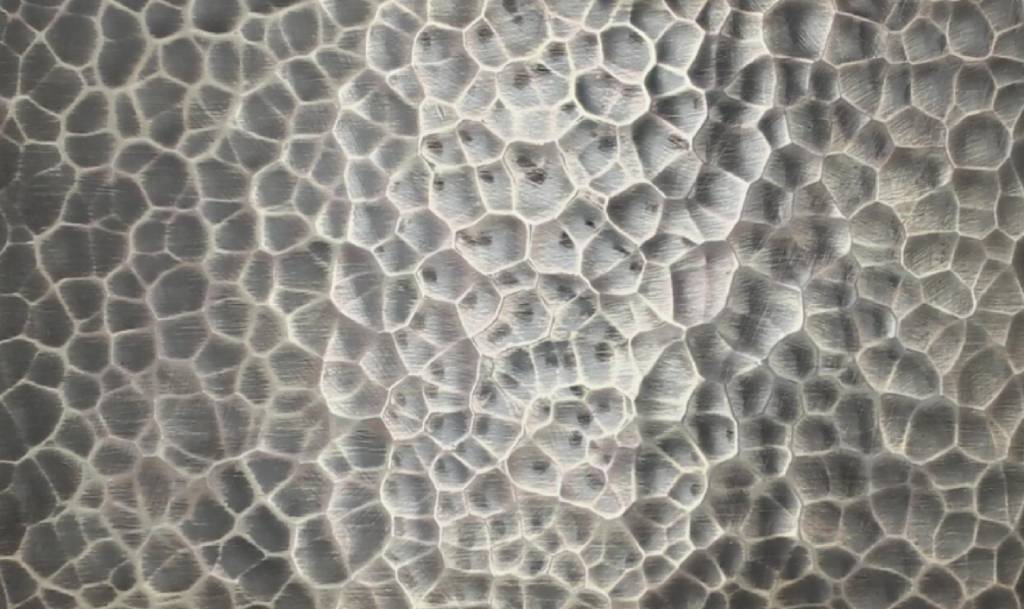 Wheatgrass finish bestows a velvety matte texture. It is an intricate pattern resembling the delicate awn and seed head of wheat grass. Crafted with meticulous precision, each stroke of the artisan's tool brings the enchanting rhythm of wheat. It provides a nice contrast to a brand, or featured element.