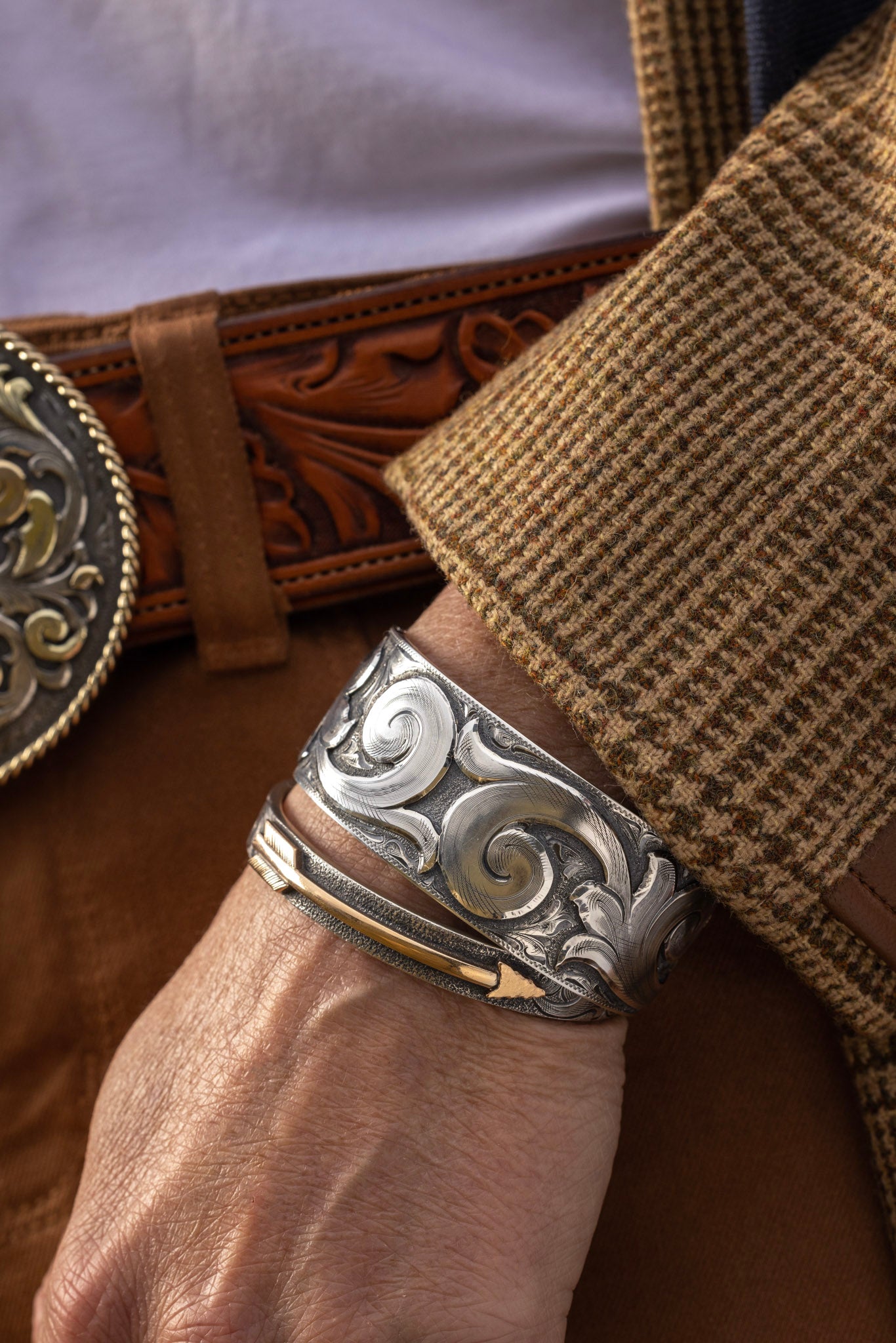 Note: Due to the handmade nature of Clint Orms bracelets, engraved patterns may vary.