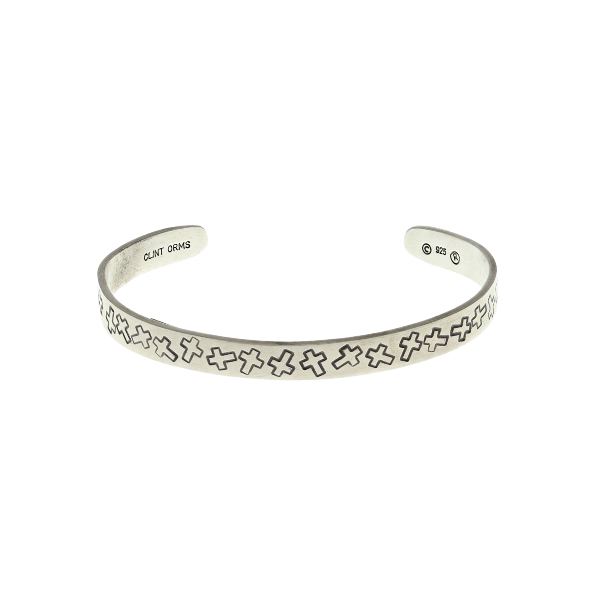 0.25" wide sterling silver bracelet with stamped cross outlines. Matte Finish.