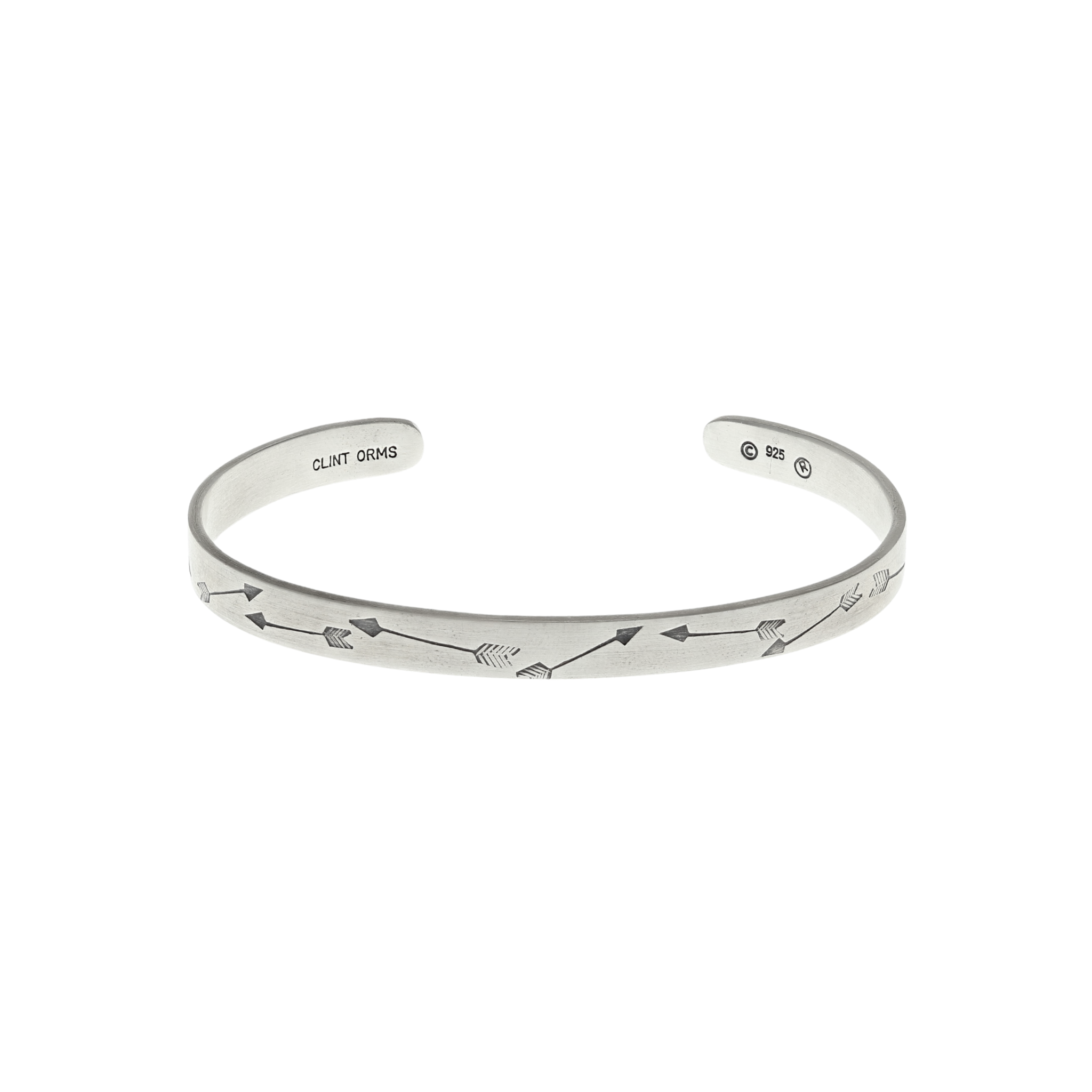 0.25" wide sterling silver bracelet with stamped arrows. Matte Finish. Made and engraved by hand in Texas by Clint Orms Engravers & Silversmiths.
