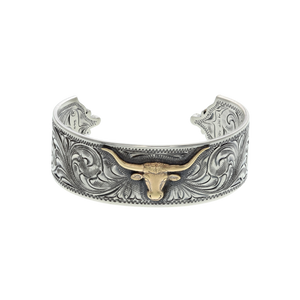 Bracelet 2012 Scroll Engraved Sterling with Gold Longhorns