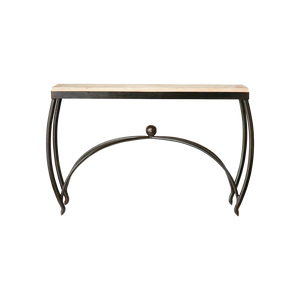 Forged iron console table with carved Torreon stone top with wax cast balín