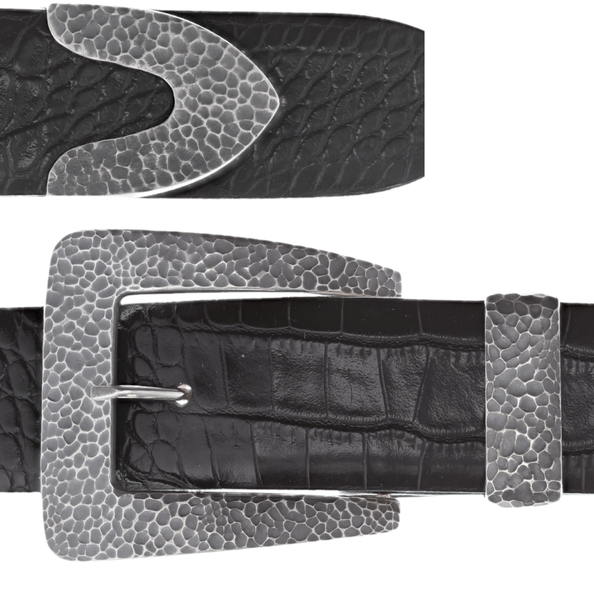 1.5" Sterling Silver Buckle Set, 3 pcs. Hammered Finish.