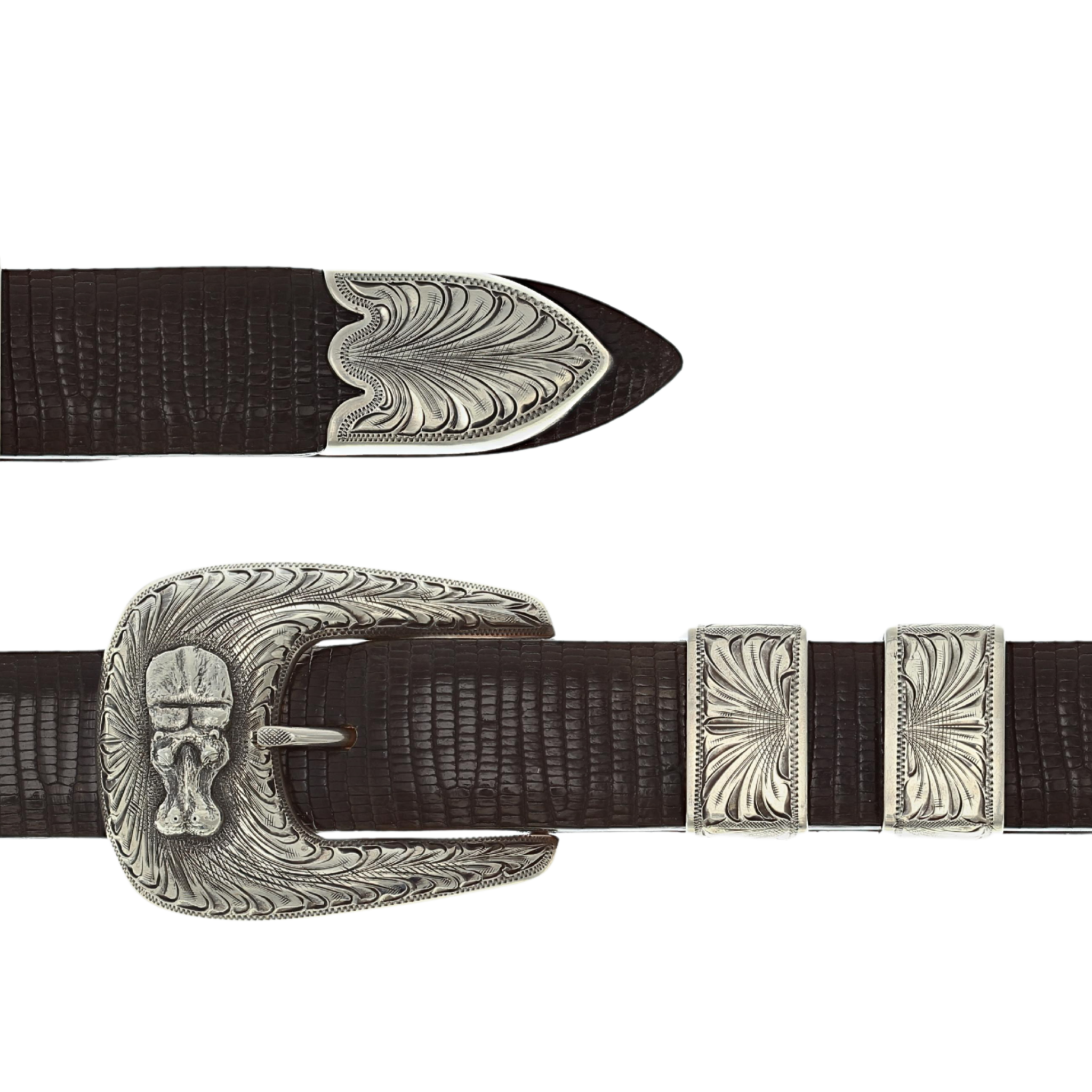 1" sterling silver buckle set with sterling silver Hippo on buckle, engraved, four pieces.