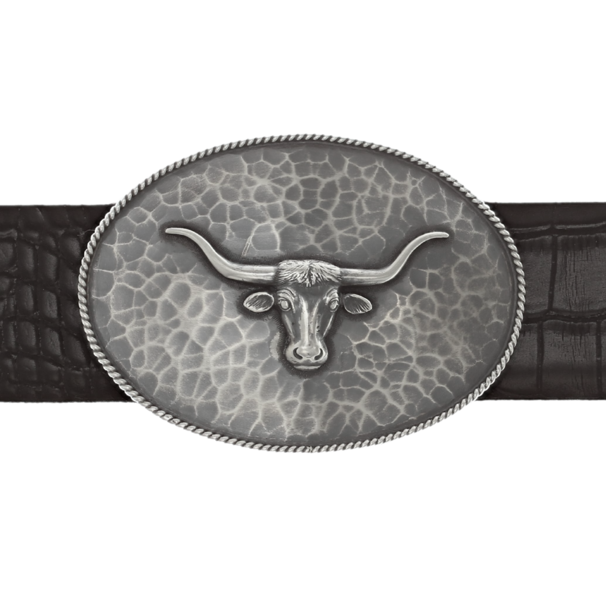 Mills 1824 Hammered Oval Trophy Buckle with Sterling Longhorn