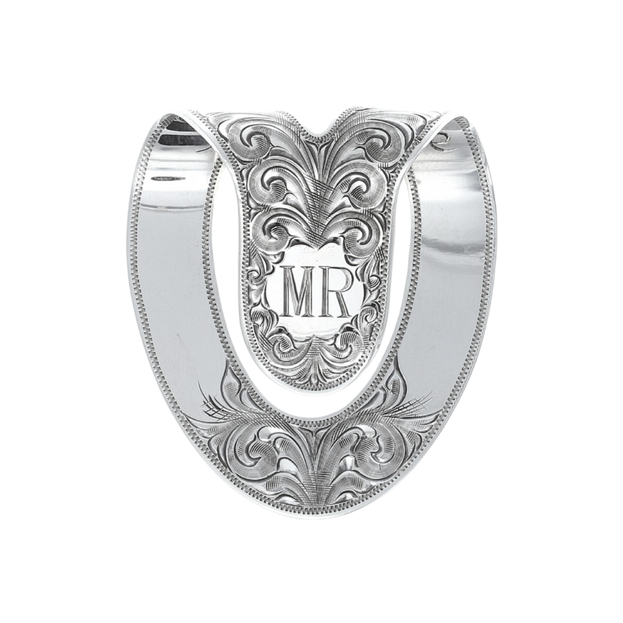 The San Saba is our most compact signature money clip. This San Saba 1806 Sterling Silver money clip, hand-engraved, includes an area for personalization. Each of our signature money clips is designed to be easily adjustable and can be re-tightened over time to accommodate different carrying preferences.