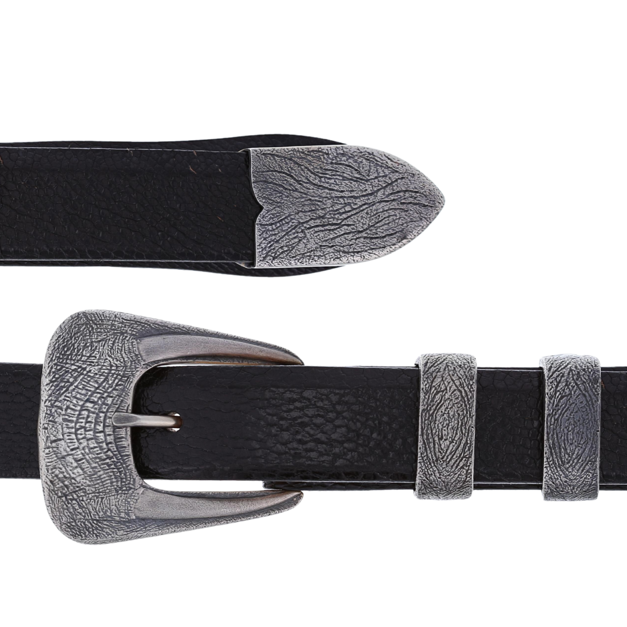 Sterling silver Houston buckle 1" set with sterling silver elephant tusks and elephant skin engraving, four pieces, limited edition of 100.