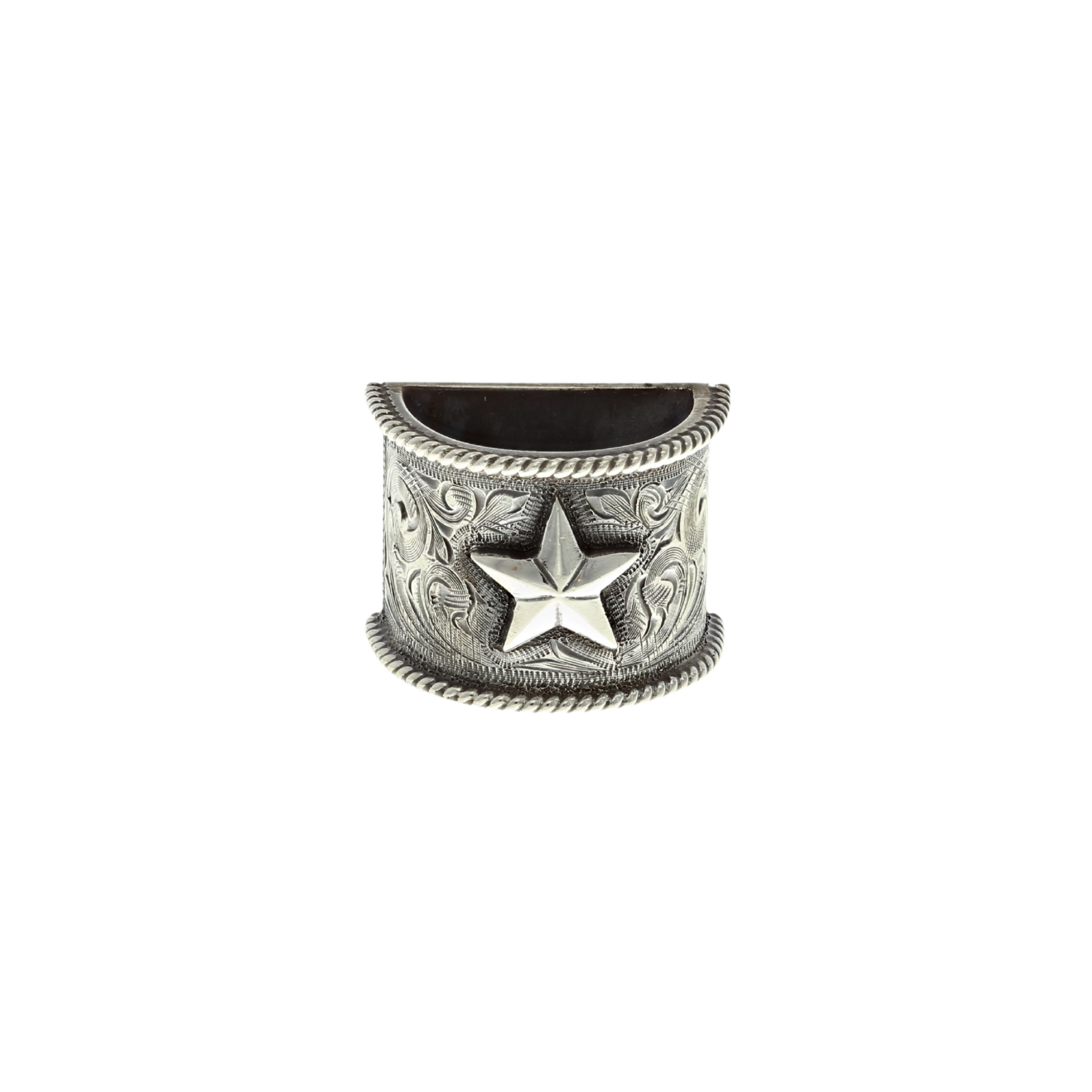 Sterling silver 'D' scarf slide, with sterling star, sterling 20ga. rope edge, engraved, oxidized and polished.
