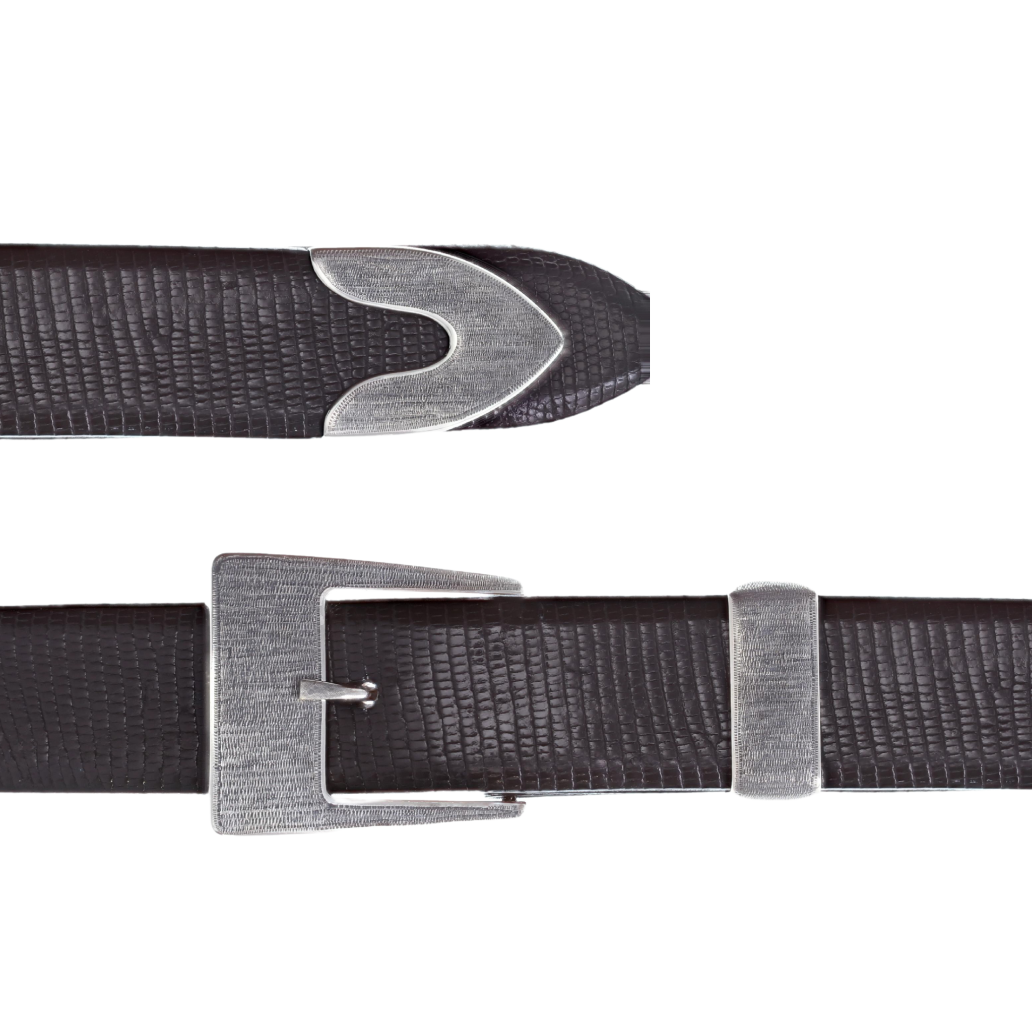 1.25" Sterling Silver Buckle Set, 3 pcs., Wriggled; Matte Finish. Made and engraved by hand in Texas by Clint Orms Engravers & Silversmiths.