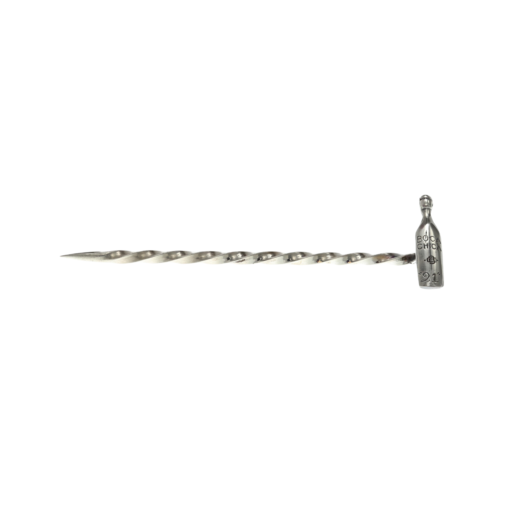 Sterling Silver 3" Twisted Toothpick with sterling silver Boca Chica wine bottle on end. Polished