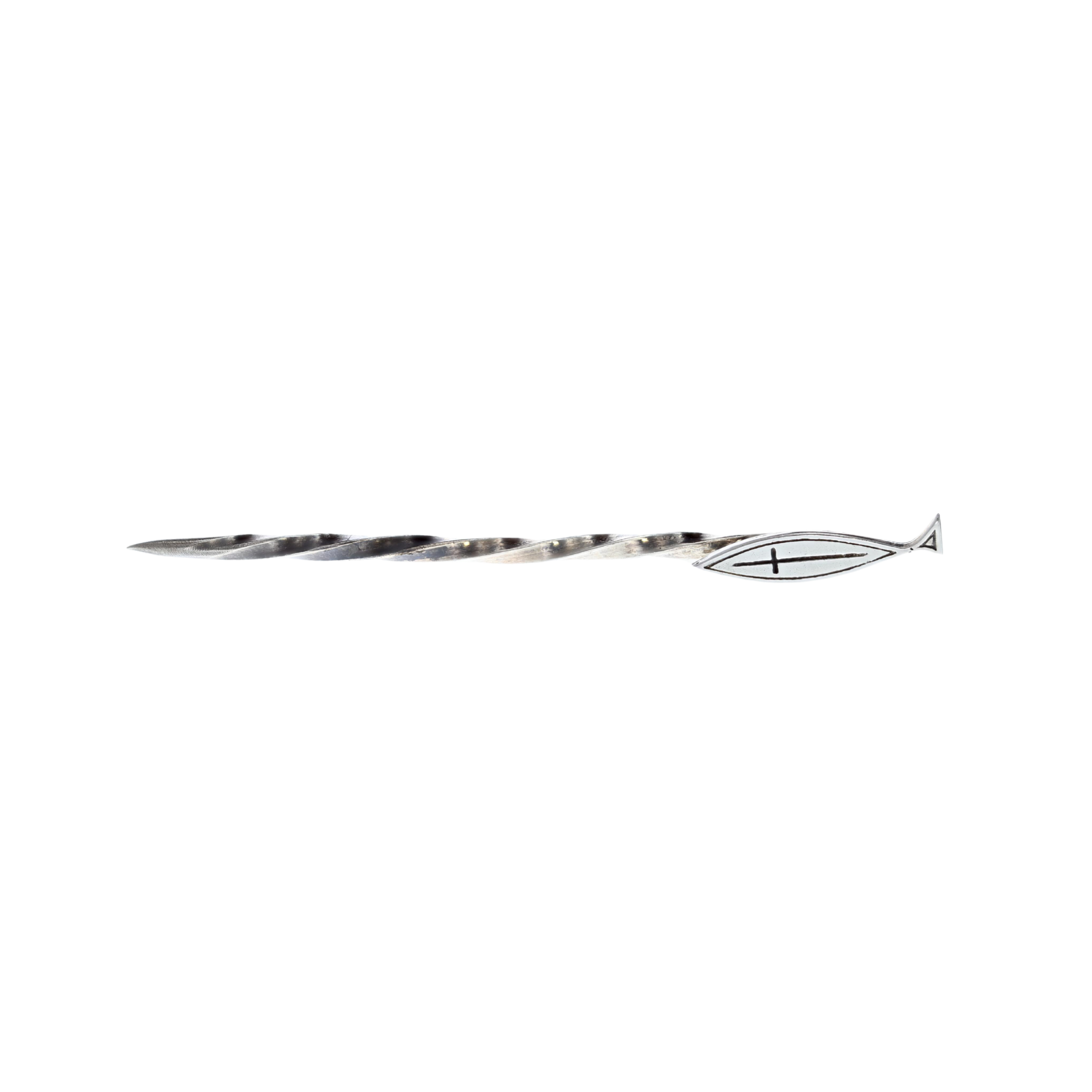 3" Sterling Silver Twisted Toothpick with sterling silver solid Christian fish charm on end.
