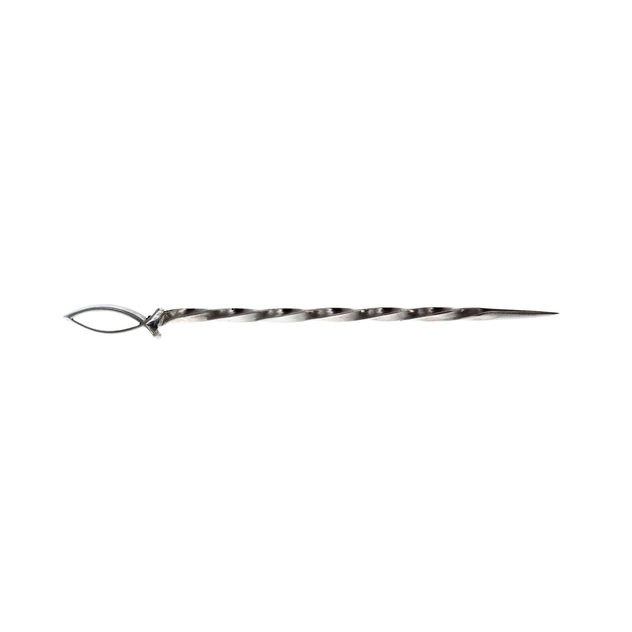3" Sterling Silver Twisted Toothpick with sterling silver hollow Christian fish charm on end.
